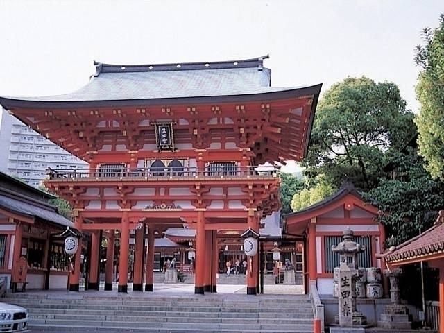 「日本書紀」には、神功皇后が海外外征の帰途、神戸港で船が進まなくなったため、神意を占ったところ稚日女尊が現れ「我は活田長狭国に居らうと思う」と申された、と記されている。また大同元(806)年、朝廷より当社のためにお供えする家、世話をする家、守る家である神戸(かんべ)44戸を頂いたとあり、この「かんべ」が「こんべ」となり現在の「こうべ」となったと伝わり、以来、神戸のルーツ「生田さん」として親しまれている。1月1日0時に開門、宮司が打つ太鼓と共に楼門上では神戸太鼓が打ち鳴らされる。
