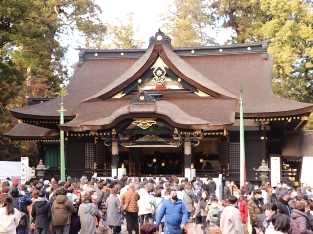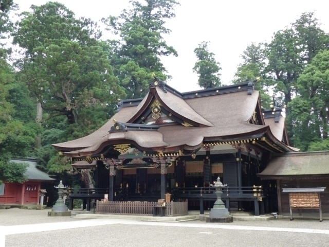 日本書紀の「国譲り」にて荒ぶる神々を平定し大事業を成し遂げた経津主大神(ふつぬしのおおかみ)を祀る。明治以前に「神宮」と名乗ることができた3社(伊勢・香取・鹿島)のうちの1社であった。黒漆塗りの重厚な本殿は、元禄時代に徳川綱吉によって造営されたもので重要文化財。また宝物館には、国宝「海獣葡萄鏡」や、陶器の「古瀬戸黄釉狛犬」など数多くの文化財を収蔵。ご利益は勝運・家内安全・心願成就・縁結び・安産・厄除けと幅広く、正月三が日で約50万人が初詣に訪れる。