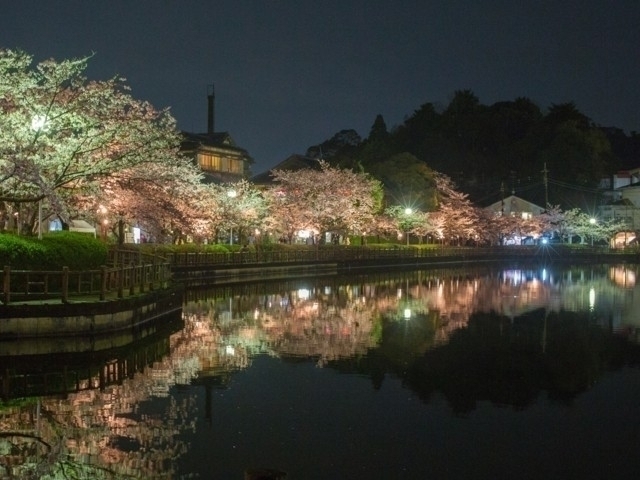 東金駅近くにある湖で、徳川家康の東金御殿の庭池として整備された人造池。周囲にはおよそ300本の桜が植えられ、湖面に映り込む桜が非常に美しい。例年、3月下旬から4月上旬にはライトアップされ「東金桜まつり」が開催される。(ライトアップ・イベントは未定)