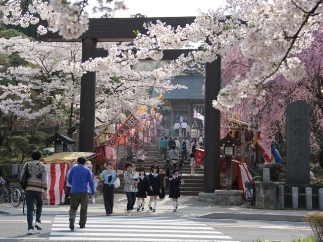 五十鈴湖を中心とした水と緑に囲まれた開成山公園は、郡山一広い公園で、県内でも有数の桜の名所。日本最古の染井吉野をはじめ、約1300本もの桜が空を覆うように咲き誇る様は圧巻だ。桜の開花期間中は隣接する開成山大神宮に露店が立ち並ぶ。