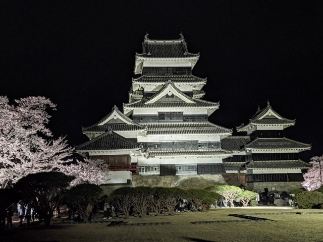 - 松本城管理課による開花宣言の3日後から8日間 夜桜会(予定)、松本城管理課による開花宣言の3日後から8日間 国宝松本城桜並木光の回廊(お堀の周りの桜をライトアップ)(予定)