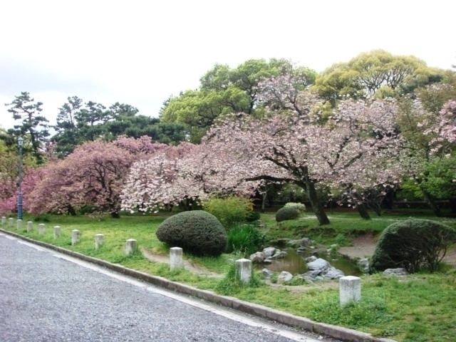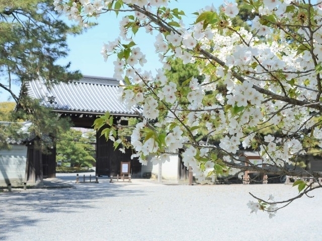 市街地のほぼ中心に位置し、京都御所などを取り囲む外周約4kmの広大な公園。苑内に生育する樹木は約10万本といわれており、梅、桜、桃、モミジなど四季を通じて人々の目を楽しませる。近衞邸跡のシダレザクラや出水の小川周辺などのサトザクラをはじめ、さまざまな桜が楽しめる。