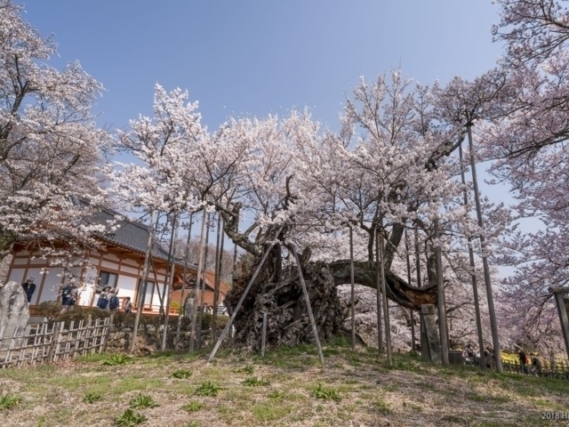 実相寺の境内にある「日本三大桜」の一つ。樹齢約2000年といわれ、樹高は10.3m、目通り幹周約11.8mもある日本で最古の巨樹。国の指定天然記念物で、「新日本名木100選」にも選定されている。4月の桜の見頃には、全国からたくさんの人がお花見に訪れる。
