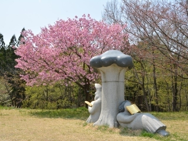 1972(昭和47)年から1973(昭和48)年にかけて日本各地から200種・2000本の桜が集められ植樹された日本国花苑。現在では桜のほかに、バラ園やツツジなどの花木園もあり、四季を通していろいろな花が楽しめる。パターゴルフ場、テニスコート、チビッコ広場、キャンプ場、入浴施設も併設されている。また、「桜の森彫刻コンクール」入賞作品の彫刻41基も展示されている。