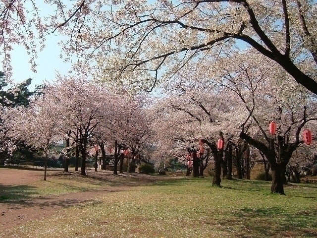 ばら園、松林、ボート池などのある利根川沿いの約37haの広大な面積を有する公園。詩人・萩原朔太郎の詩碑や蚕糸記念館もある。春にはボート池の水面を桜が彩り、のんびりとしたお花見スポットとなる。満開のシダレザクラも美しい。