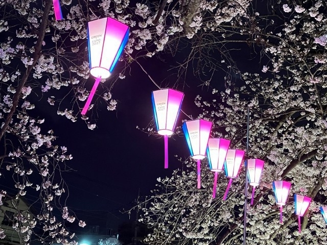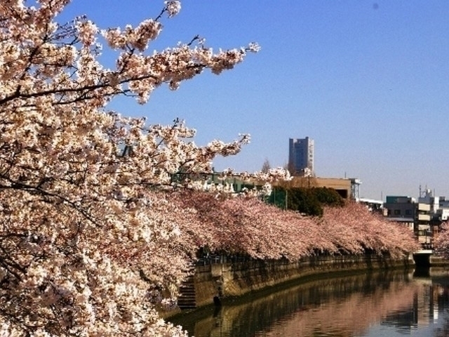 大岡川に沿ってのびる約3.5kmのプロムナード沿いに桜並木が続く。開花期間中は観音橋(弘明寺商店街)から清水橋の区間にぼんぼりが灯り、淡いピンク色の桜がライトアップされる。