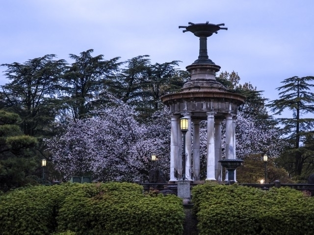 1909(明治42)年に開園した、名古屋市が最初に設置した都市公園。ソメイヨシノなど750本が植えられ、他にもバラ、ハナショウブなど色とりどりの花が次々と園内を彩る。2023(令和5)年5月には、園内の3エリアがリニューアルオープンし、多彩な飲食店でにぎわいが増している。