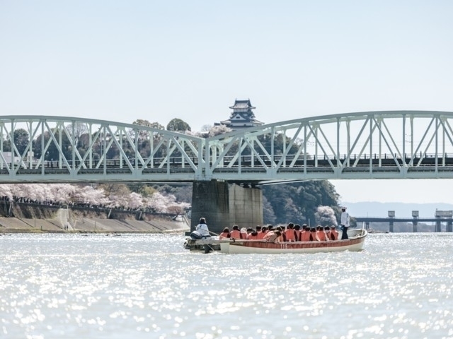 国宝五城のひとつに数えられ、天守は現存する日本の城の中で最古といわれる犬山城。木曽川沿いの高台に建つことから李白の詩になぞらえ「白帝城」とも呼ばれる。犬山城を中心に木曽川河畔一帯に約400本の桜が咲き誇り、愛知県を代表する桜の名所となっている。川沿いを散策しながら眺める桜並木も美しいが、船上から望む風景も一見の価値あり。
