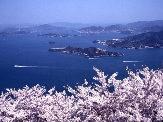 山頂から眺める瀬戸内海随一の多島美とともに桜を堪能