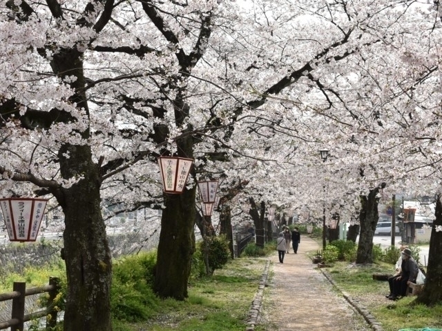 市内の中心部を流れる東川沿いには桜並木があり、開花のシーズンには多くの花見客でにぎわう。例年、夜にはぼんぼりが灯り、やさしい灯りに照らされた幻想的な夜桜観賞が楽しめる。