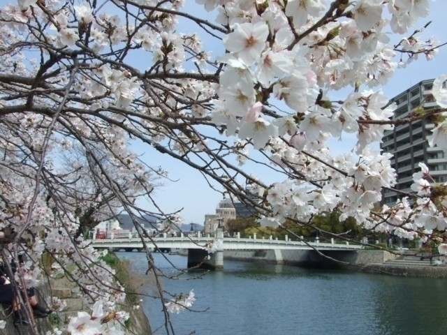 広島市の中心部にあり、世界の恒久平和を願って爆心地に近い場所に建設された広大な公園。川と緑に囲まれた公園は、花の名所としても知られ、桜、バラ、チューリップ、ツツジ、キョウチクトウなど美しい花を楽しむことができる。春には約300本の桜が公園内に咲き誇り、川沿いは桜の並木道となる。