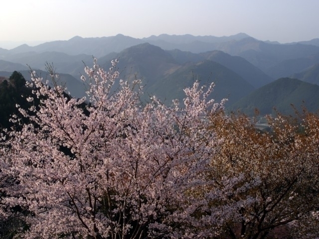 熊野本宮大社の旧社地「大斎原(おおゆのはら)」をはじめ、本宮の里が一望できる熊野本宮名勝八景のひとつ。ソメイヨシノやクマノザクラ、ヤマザクラなど約800本の桜が咲き誇る桜の名所で、自然を満喫しながら散策できる。