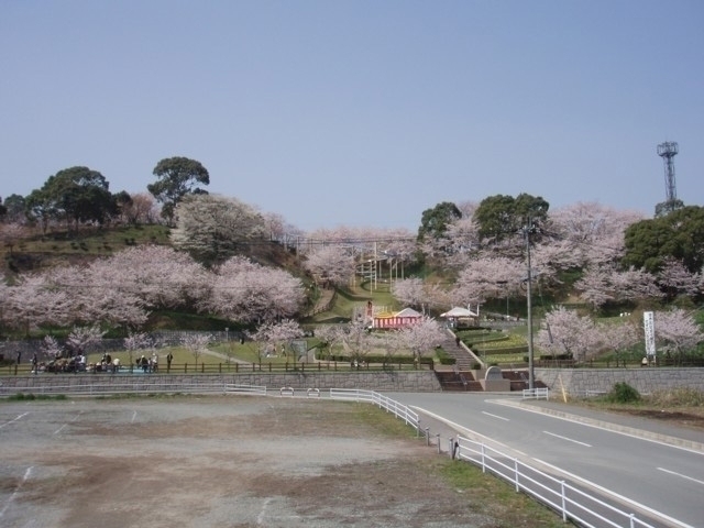 標高112mの丘陵地に位置する公園。およそ2500本のソメイヨシノが開花すると、公園内の歩道は桜のトンネルに変わり、春爛漫の雰囲気を味わいながら散策を楽しめる。入口にはスロープや複合遊具があり、設備も充実。見頃の時期には桜のライトアップも行う。