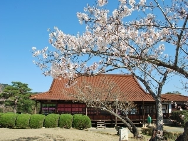多久出身の石炭王・高取伊好が私財を投じて建設し、寄贈した山水公園。国の登録有形文化財に指定された公会堂「寒鶯亭」や郷土資料館、歴史民俗資料館、先覚者資料館などがあり、春は桜、秋は紅葉の名所となっている。約400本の桜の周囲には芝生などもあり、お花見をするには絶好のスポットだ。また、公園の近くに孔子を祠る「多久聖廟」があり、足をのばして散策するのもいい。