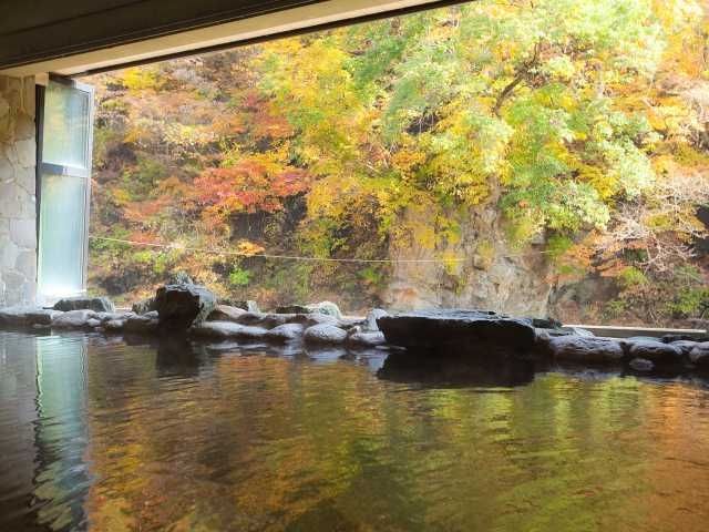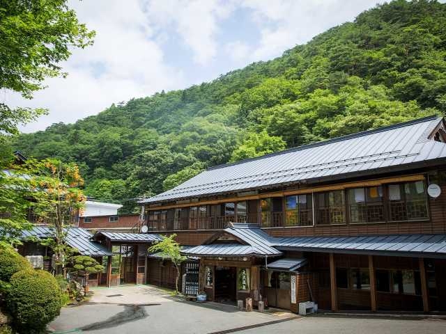 河畔にある露天風呂が名物の温泉宿。対岸に曲り橋を望む巨大な湯船は混浴だが、大自然に囲まれ開放感いっぱい。山水閣には男女別の半露天風呂(冬期は内湯)があり、こちらも風情がある。