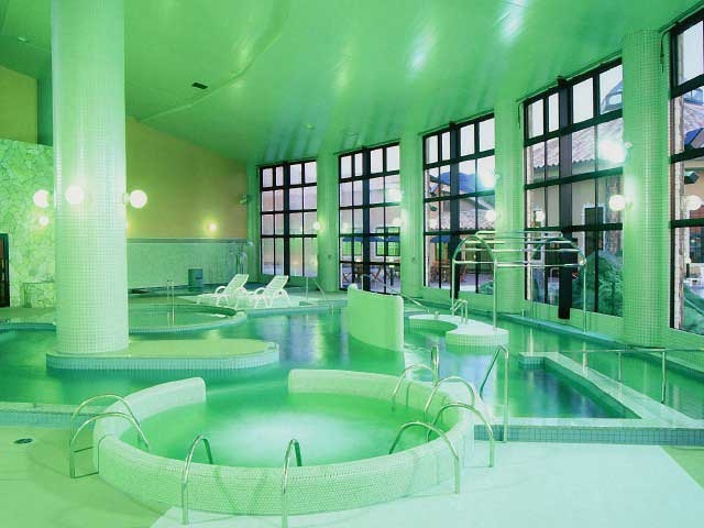 島内最大規模のクア施設。屋内外で湯遊びを満喫