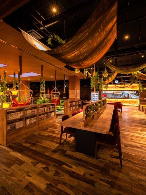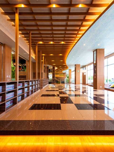 地下1500mから湧き上がった天然温泉をはじめ、緑に囲まれた露天風呂など12種類のお風呂とサウナ。料金内で利用できる5種の岩盤浴、本、コミック5万冊が読み放題の休憩コーナー、3階レストランではテラスでのBBQや、グランピング風の5階のカフェでプチアウトドア気分も楽しめる。安全な遊具を配したキッズ用プレイエリアほか、多様なニーズを考慮した充実の温泉施設。