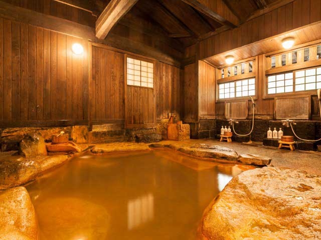 温泉街から離れた静かな一軒宿。およそ3000坪の敷地内に、混浴露天風呂や女性用露天風呂などがある。二つの源泉をもち、内風呂の湯は少し青みを帯びている。日帰り入浴は露天風呂のみ、湯上がりは無料の休憩コーナーが利用できる。