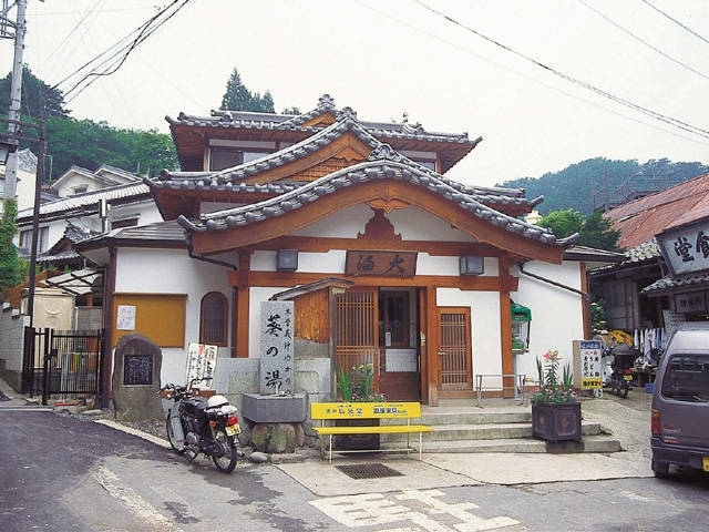 吉川英治作『新・平家物語』の舞台となり、義仲が葵御前と逗留したことから「葵の湯」とも呼ばれる外湯。宝形造りの屋根が長い歴史を物語り、シンプルな浴場の造りには温泉そのものを尊ぶ姿勢が表れている。