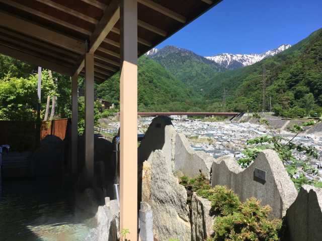 中央アルプス駒ヶ岳の懐に抱かれ、広々とした露天風呂で味わう高原のすがすがしさと峰々の眺望が素晴らしい。休憩広間や食事処もあり、湯上がりには地ビールやソースかつ丼も味わいたい。
