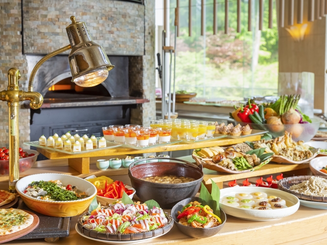 滝を眺めるゆったりした庭園大浴場、滝ノ湯川を眼下に望む渓流露天風呂と、豊富な湯量を生かした開放感たっぷりの入浴施設。自然の息吹を間近に感じながら、湯の癒やしに身をゆだねることができる。