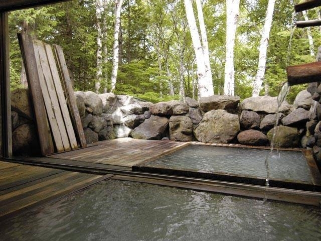 シラカバの森に包まれた静かな宿。薄く濁った酸性泉は薬効が高いと評判で、「信玄の薬湯」としても知られている。男女それぞれ2つの内湯と北八ヶ岳を見晴らす露天風呂があり、湯治場風の雰囲気も温泉ファン垂涎。