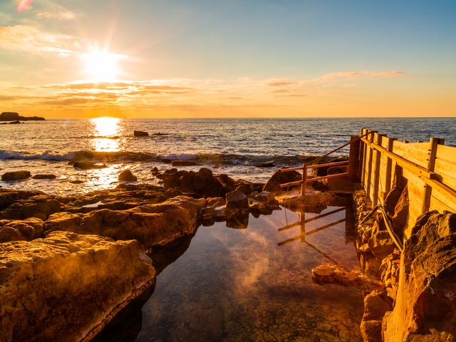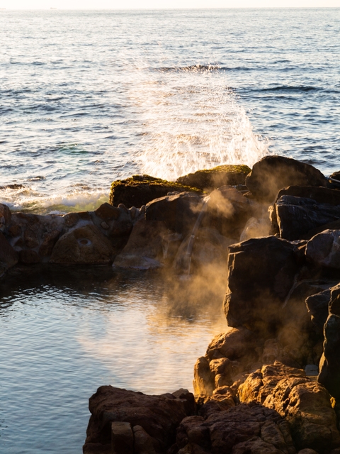 太平洋が間近にせまる露天風呂。1300年以上の歴史をもつ湯