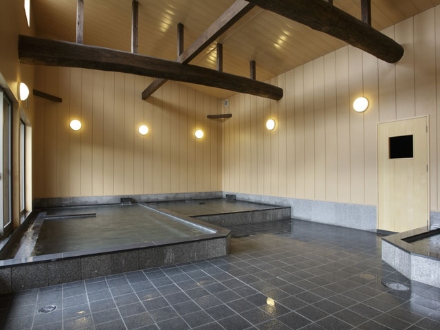 二つの源泉から引く温泉は、肌なじみが良く、とろりとした肌ざわりなのが特徴。男女別の内風呂と露天風呂、冷泉風呂、独自の方法で炭酸を湯の中に閉じ込めた高濃度炭酸泉風呂などがある。