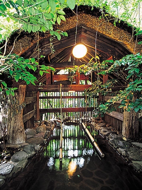 日本の名湯・秘湯100選に選ばれている人気の高い宿。湯の深さ1.3mの立ち湯をはじめ13の風呂がある。日帰り入浴ができるのは打たせ湯がつく男性用露天風呂と、立ち湯がつく女性用露天風呂。空いていれば貸切風呂も利用できる。