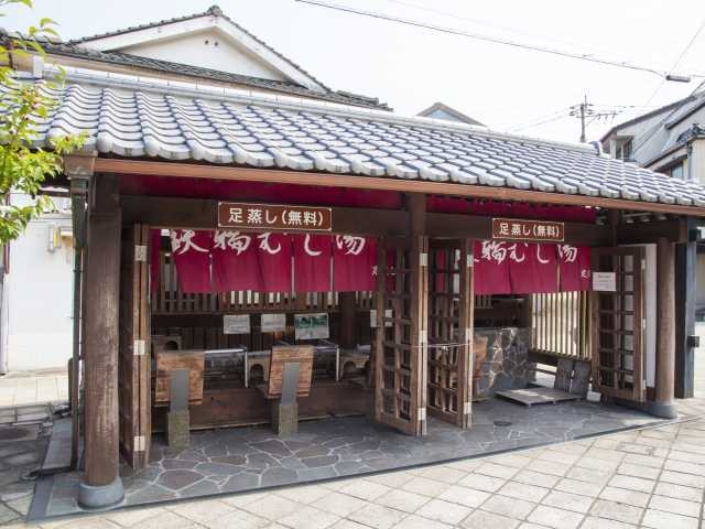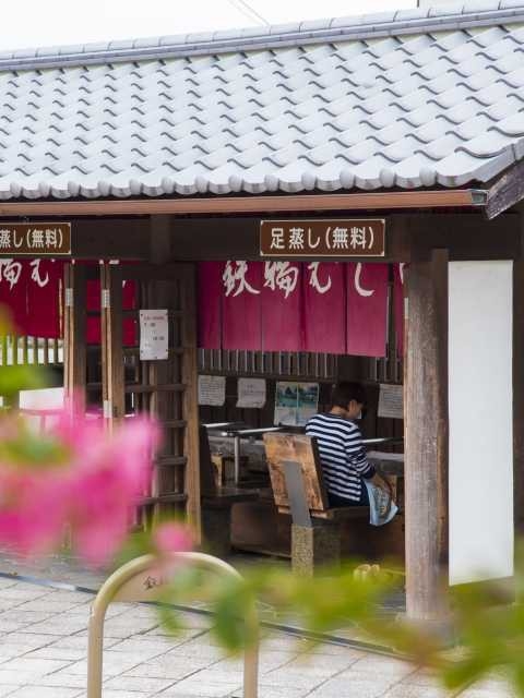 鎌倉時代から続く古来温泉療法の蒸し湯。男女別の石室があり、温泉で熱した床の上には石菖が敷き詰められ、その上に浴衣などを着て寝転ぶ。Tシャツや短パンを持参してもいい。体の芯まで温まり、汗が出る。無料の足蒸しを設置。