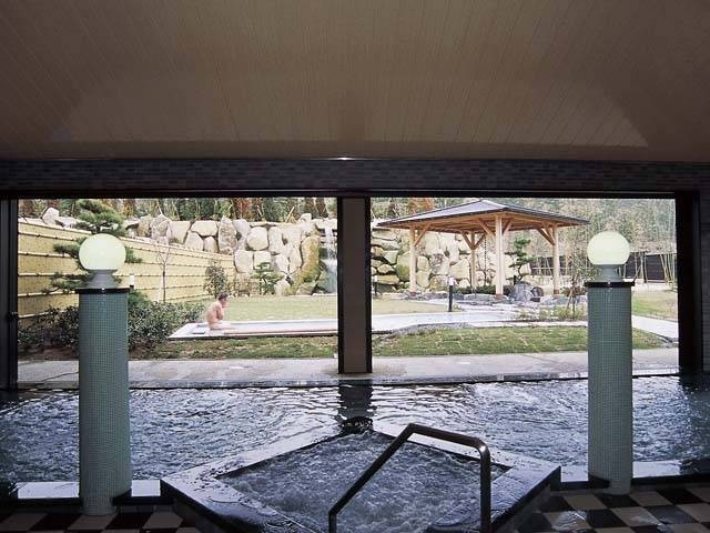 9600坪の庭園の中に建つ。開放的な大浴場のほか、滝音が耳に心地よい露天風呂、半身浴などがあり、自然の風や光が感じられる爽快な温泉。