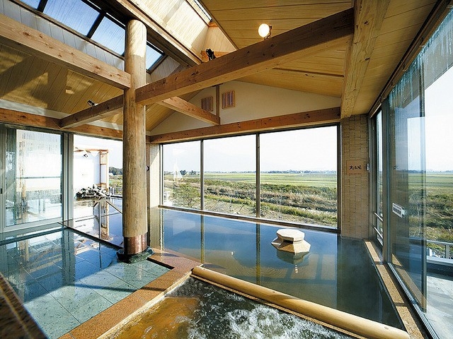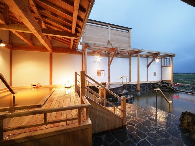 バリエーション豊富なお風呂が揃い、2階の露天風呂からは、東山連峰や、八海山まで眺めることができる。和風情緒あふれる温泉と新鮮な海の幸、山の幸を使った料理を気軽に楽しめる。