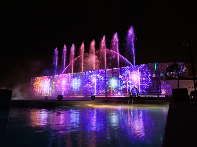 「別府温泉 杉乃井ホテル」内にある日帰り入浴施設。眺望が魅力の5段構造の大展望露天風呂「棚湯」や、水着で楽しむ露天型温泉施設「アクアガーデン」では夜の幻想的な噴水ショーも必見。二つの施設は自由に行き来ができる。