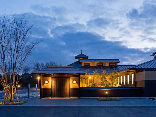 黒褐色を基調にし、木地を生かした材でぬくもりを際立たせた湯治宿のような温泉館。派手さをおさえた上品な浴場、ノスタルジックなカフェやレストランなど意匠が映える独特の空間造りが印象的。