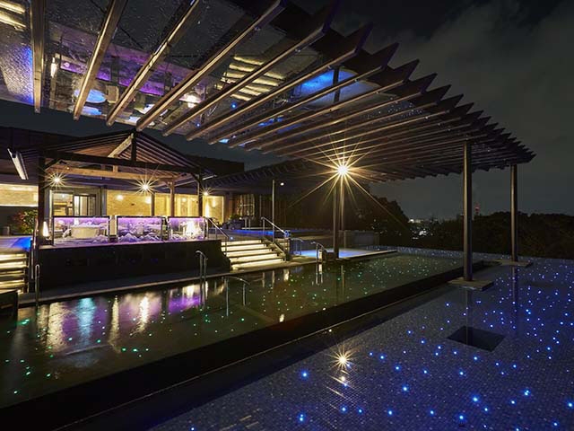 美しい夜景を眺めながら温泉が楽しめる