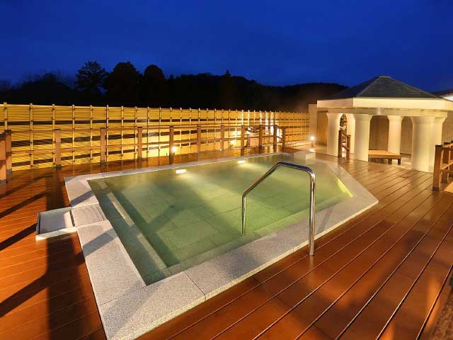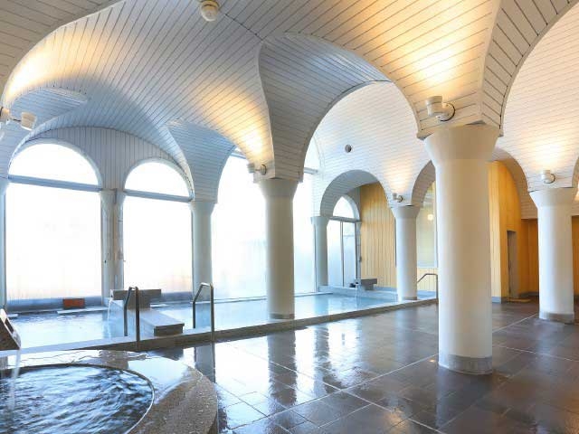 レジャー施設が充実している宿で日帰り入浴ができる。洋風浴場と檜風呂の大浴場があり、男女日替わり。露天風呂つき貸切内風呂は、和と洋の2種類がある。