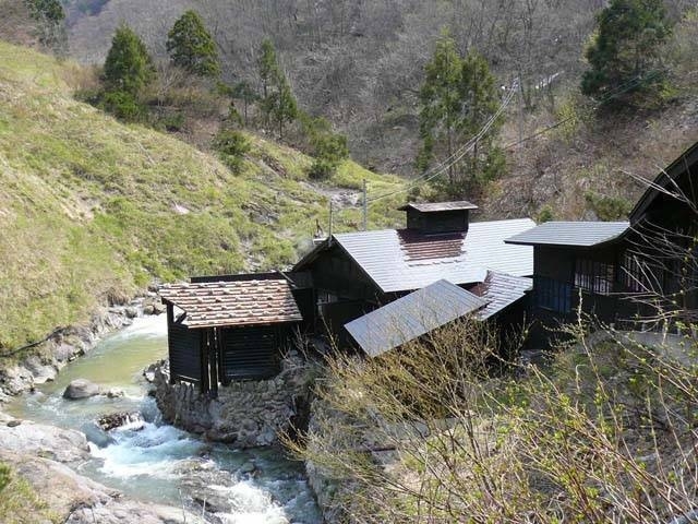 渓流をせき止めて造った野趣あふれる露天の川風呂をもつ。湯は皆瀬川から湧き出る源泉だ。渓流を眺めながら入浴できる男女別の露天風呂は緑濃い山々に囲まれている。内風呂は宿泊者専用で、立ち寄り湯は今昔風呂と露天風呂のみ利用可能。