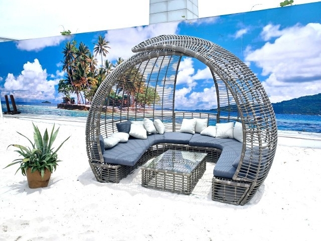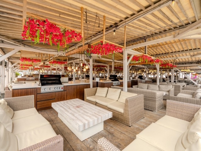豊洲の先端に位置する、都内最大級約1000席の大型BBQ施設。エントランスから場内へ進むと、海外のビーチリゾートをイメージした、ウッドテラス空間が広がる。これまでの一般的なベンチのBBQではなく、ラグジュアリーなソファーでガスグリルか炭火を選べる。手ぶらで来て楽しめる予約食材や約50種類の飲み放題も用意。夜はBBQを楽しみながら東京湾の夜景を一望できる。