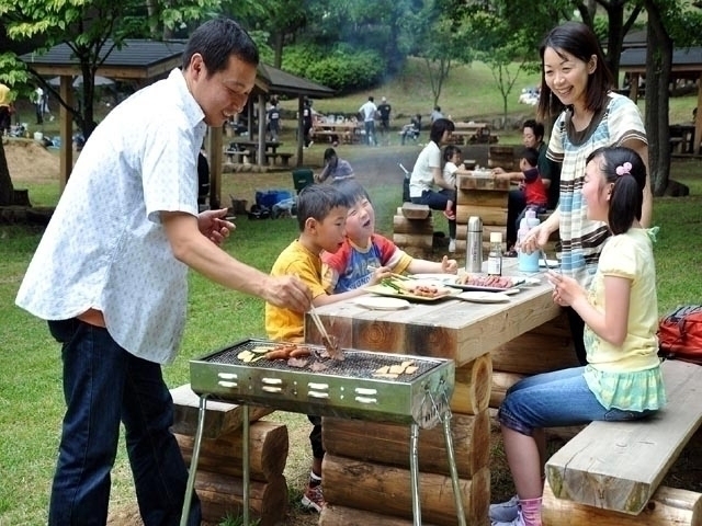 都会の人々が緑を十分に堪能できるよう、施設を最小限にとどめた森林公園。敷地は横浜スタジアムの24倍の広さをもち、数多くの野鳥や雑木林、4・5月に咲く西洋シャクナゲが見られる。手ぶらで利用できるバーベキュー場で、材料はすべて用意してもらえる。また、屋根のついた炉もあるため、天候に左右されずに楽しめるのもうれしい。