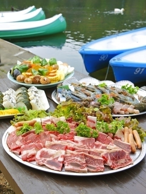 - 炭・薪あり、食材+機材レンタル松コース5000円・竹コース3800円(各1人前、5人前から要予約)