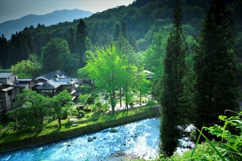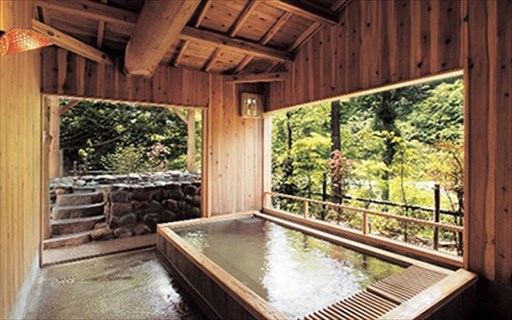 守門川沿いに佇み昭和初期建造の料亭を移築した入母屋造りの建物は2012年、国登録有形文化財に登録された。なめると「こぶ茶」のような味のする温泉は、日本屈指の濃厚な食塩泉。優しく肌にまとわりついてくる美肌によい泉質だ。無料で利用できる2つの貸切り風呂は、木造りの内湯と趣の異なる露天風呂が備わる。その中の「石湯」は石で組んだ湯船を配しており、お湯に浸かりながら自然を眺めての湯浴みは格別。お料理は新潟県産和牛の石焼や、地元の旬の素材を活かし趣向をこらした心づくしの料理が並ぶ。湧水を使って調理する滋味深いヘルシーメニューが基本。四季折々の食材を楽しむ季節限定プランも好評。開湯より肌によいと言われ“妙湶”と呼ばれる濃厚な強食塩泉はデリケートなお肌におすすめ。”妙湶”化粧品も販売されている。