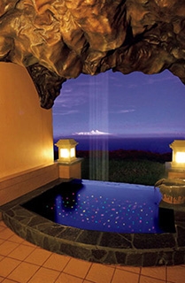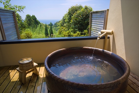 【全室から海と大島を望む温泉露天風呂付きの人気宿 食べ飲み放題やエステ、各種体験パックも充実】 テレビでも多数紹介され、有名人も訪れているおしゃれな英国館の人気宿。客室は全室オーシャンビューで伊豆大島を一望でき、温泉の露天風呂が備わる。ほか、滝越しに海を望む貸切の南国風洞窟露天風呂は水中光が七色に輝き、内風呂のジャグジーも水中照明で、ともに幻想的な雰囲気だ。夕食は、旬の地場食材を使った本格欧風フルコースと舟盛り付き和洋折衷コースから選べる。伊豆名産の金目鯛が2名に1尾付き、好評。選べる食べ飲み放題プランもあり、食が充実している。ワイン通のオーナー厳選の、ワイン50種もおすすめ。また、ソフトの種類が豊富なスイッチ等テレビゲームを部屋に無料で貸し出してくれる。女性には選べる色浴衣が無料。客室で受けられる各種エステは、特別価格と嬉しいサービスを用意。周辺の観光スポットや各種体験などのお得なパックも充実。