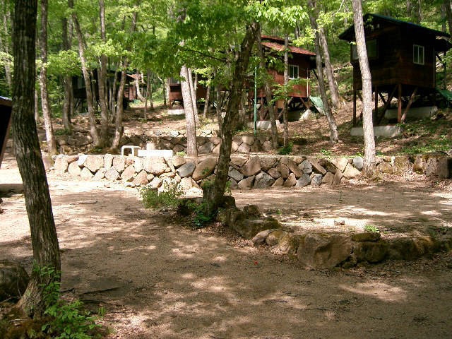 場内を川が流れ、木漏れ日が差し込む雰囲気の良いキャンプ場。林間にログハウス風の宿泊施設が点在し、快適な温泉施設も隣接していて、割引料金で利用できる。上流には大小13の滝や、北アルプスを望む展望台もある。