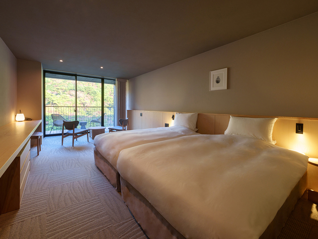 雲仙、小浜エリアでは、湯量豊富な温泉をかけ流しにする宿が多数。客室からの景観や料理も楽しみ。