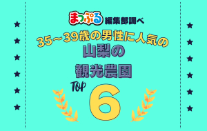 旅行ガイドブックまっぷるマガジンの昭文社が運営する無料旅行アプリ「まっぷるリンク」の過去1年間の利用状況からランキングを作成。今回は35~39歳の男性が多く情報をチェックした山梨県で人気の観光農園をご...