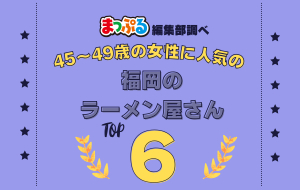 旅行ガイドブックまっぷるマガジンの昭文社が運営する無料旅行アプリ「まっぷるリンク」の過去1年間の利用状況からランキングを作成。今回は45~49歳の女性が多く情報をチェックした福岡県で人気のラーメン屋さ...