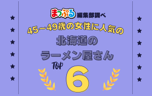 旅行ガイドブックまっぷるマガジンの昭文社が運営する無料旅行アプリ「まっぷるリンク」の過去1年間の利用状況からランキングを作成。今回は45~49歳の女性が多く情報をチェックした北海道で人気のラーメン屋さ...
