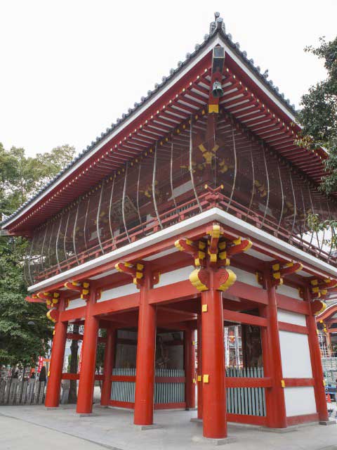 大須のシンボルとして知られる観光名所。鮮やかな朱色の建物が目を引く境内には、国内外から多くの人が集まり、記念撮影のスポットにもなっている。