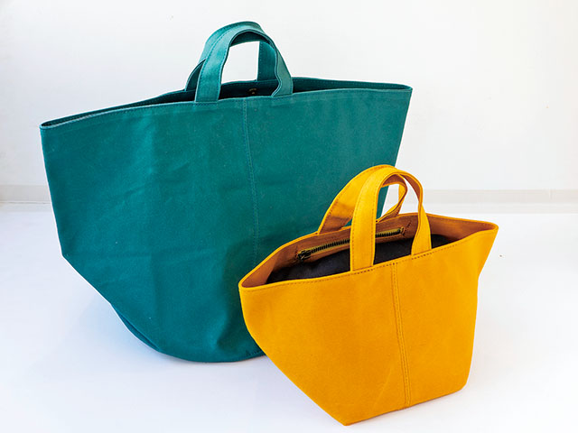 メイドインジャパンの帆布製バッグ。丈夫で、使い込むことで手になじみ、味わいが増す