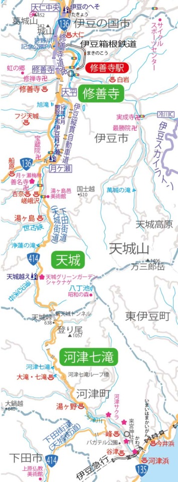 修善寺旅行に出かける前に、各エリアの位置関係を把握して楽しい旅のプランを立てましょう!
